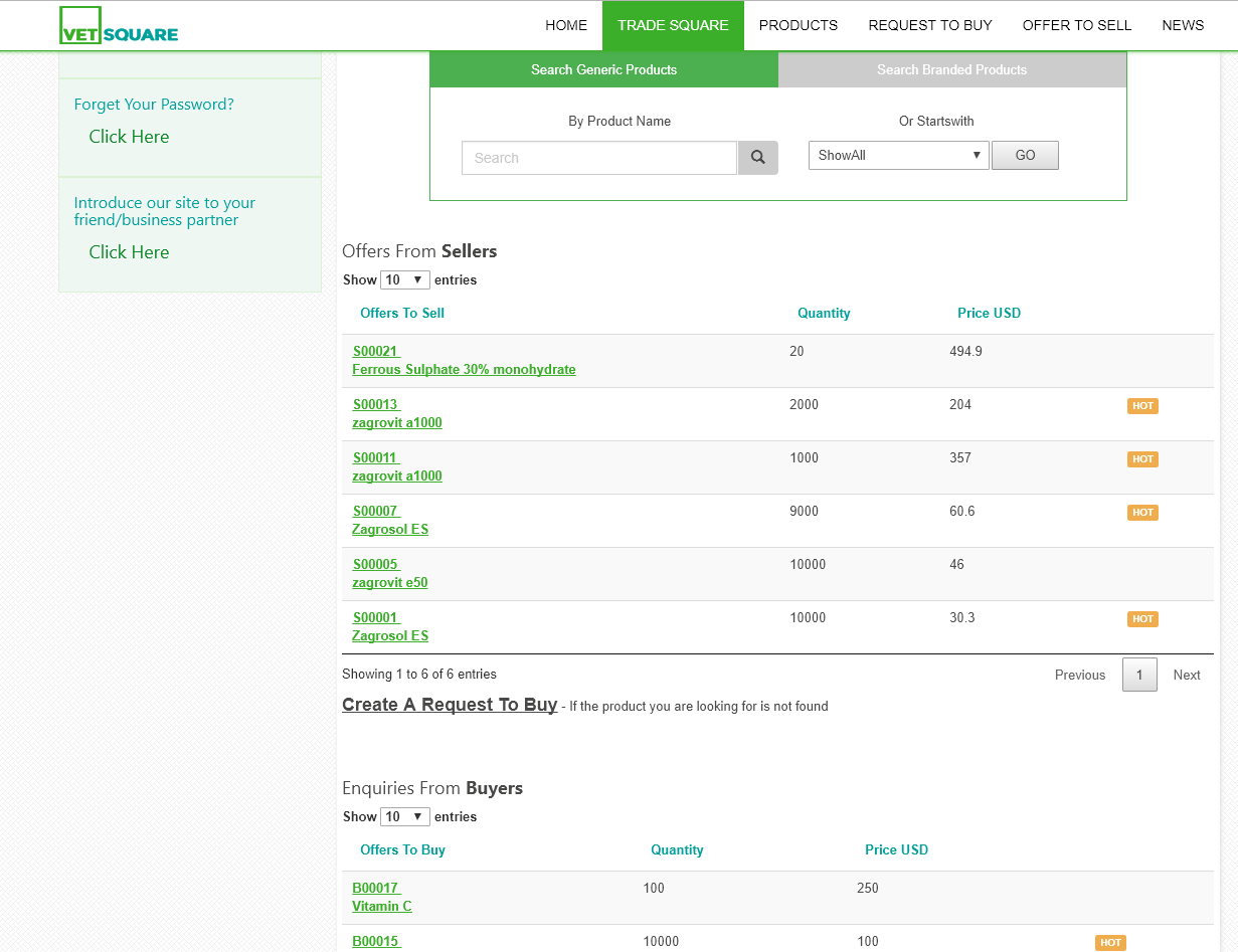 VetSquare.com's online trading platform is part of our effort to eliminate existing inefficiencies in the procurement, pricing and distribution of products and services in the Animal Health industry. The platform is an online portal for trading globally from the convenience of your office or home or farm.